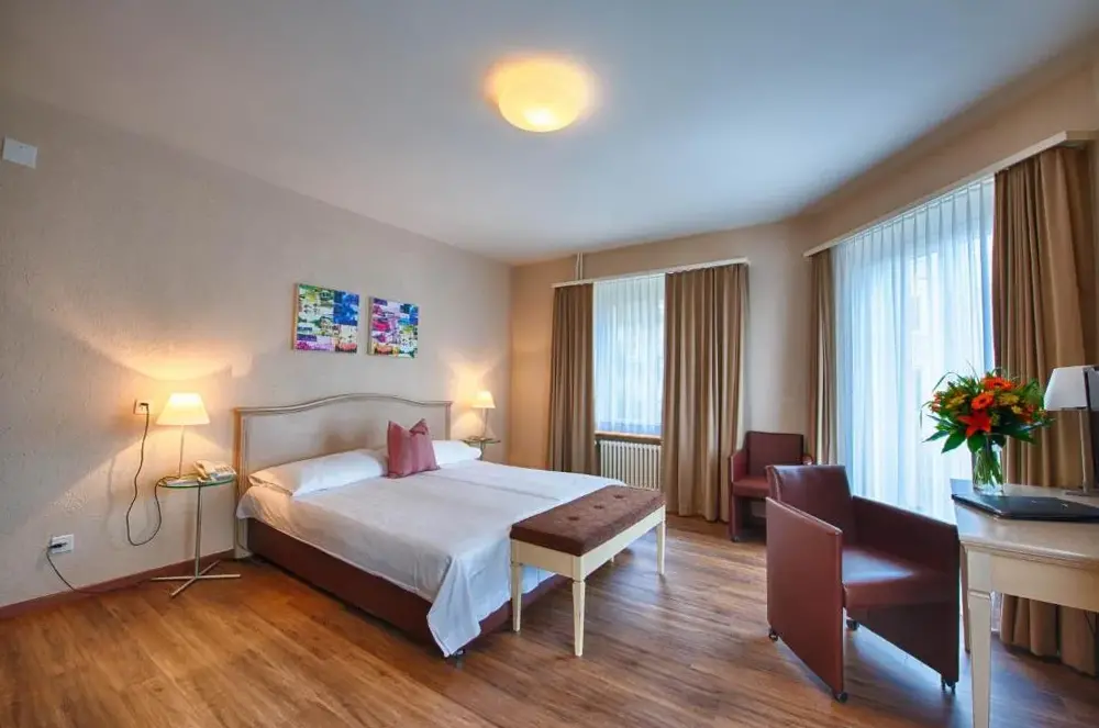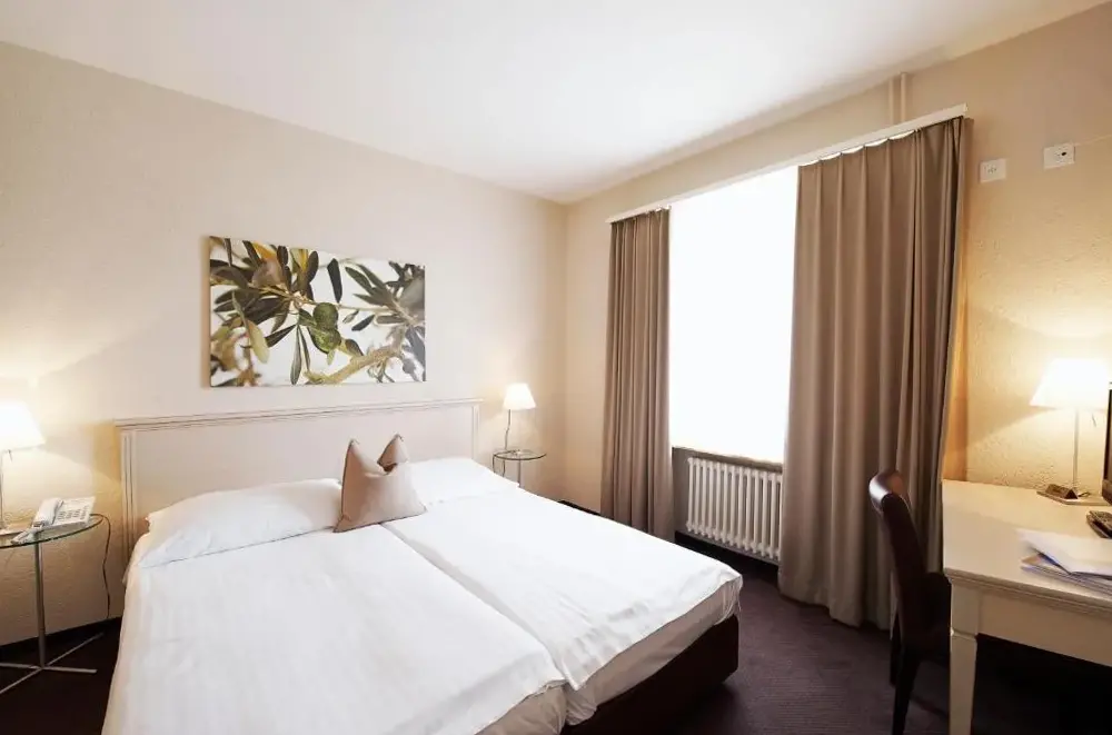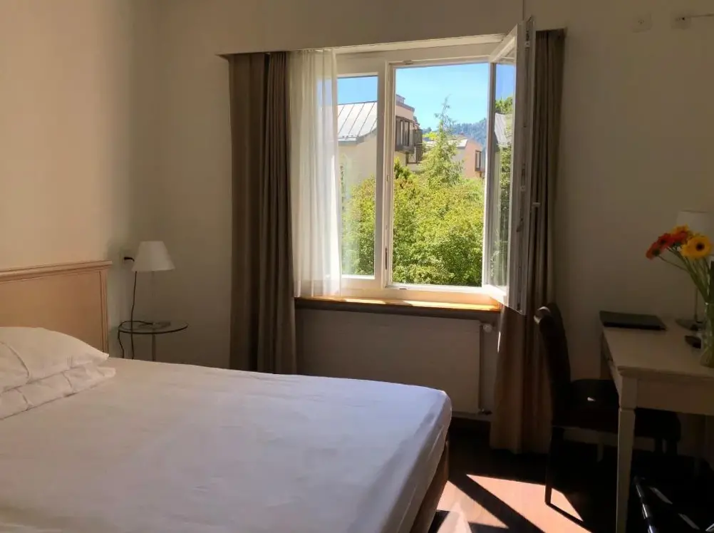Very tight parking situation. A maximum of five (smaller) cars can fit in the small parking lot belonging to the hotel, although you cannot reserve a space. Alternatively, you have to get a parking ticket at reception for 15 sFr. solve per calendar day for the surrounding blue zone. The receptionist was not particularly familiar with the parking conditions.