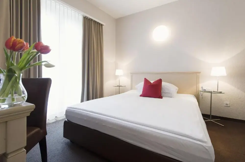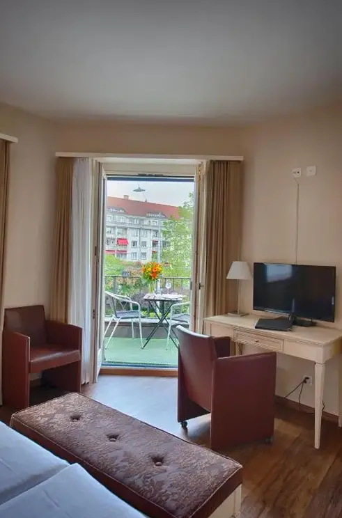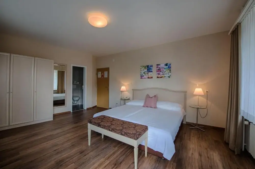 Large room, but the furnishings are clearly showing their age (window sills, heaters, sun protection) and are rather plain. Just within walking distance of the center if you're good on foot. Good breakfast with attentive and friendly staff.